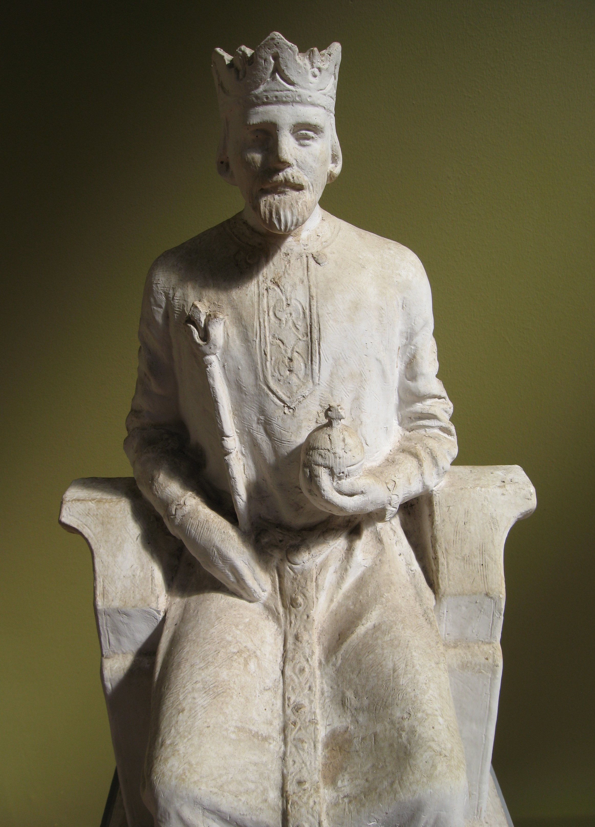 PORTRETTER Sofus Madsen lagde mange skulpturer av kjente personligheter. På bildene over ser du Olav Kyrre.