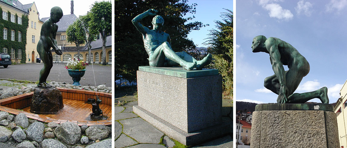 Alle som gjennom årene har tatt seg et sentralbad på Nøstet kjenner Ung pike fra 1936. Alle kjenner guttene i byparken. Skulpturene i byrommet er alle støpt i bronse. Et materiale for evigheten. Men et buekorpsgeværløp kan bli brukket av, sur nedbør i regnbyen Bergen setter sine spor, og alle vet hvordan en skulptur ser ut etter at byens måker har brukt den som landingsplass. Men det er også en annen form for slitasje man kan legge merke til og som forteller at Madsens skulpturer i parker og gater har betydd noe for barn i byen gjennom årene: I kontrast til sprøyteguttens grønne kropp står hans skinnende kobbergyldne isse som er holdt blank av barnehender gjennom mange tiår.
